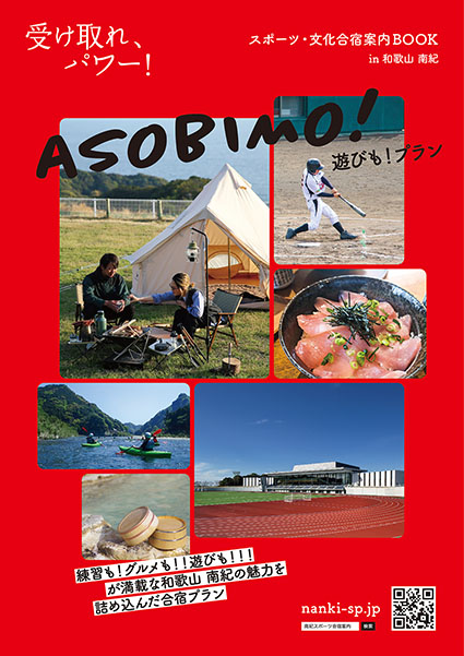 南紀エリアの「観光」や「グルメ」も楽しめるパンフレット「遊びも!プラン」が完成しました! 観光スポットやスポーツ施設、グルメ情報のほか、1泊2日の合宿プランなどを紹介しています。 練習も!グルメも!!遊びも!!!が満載な和歌山・南紀エリアでの合宿をぜひご検討ください。 【パンフレットデータのダウンロードはコチラ】 ↓ ↓ ↓